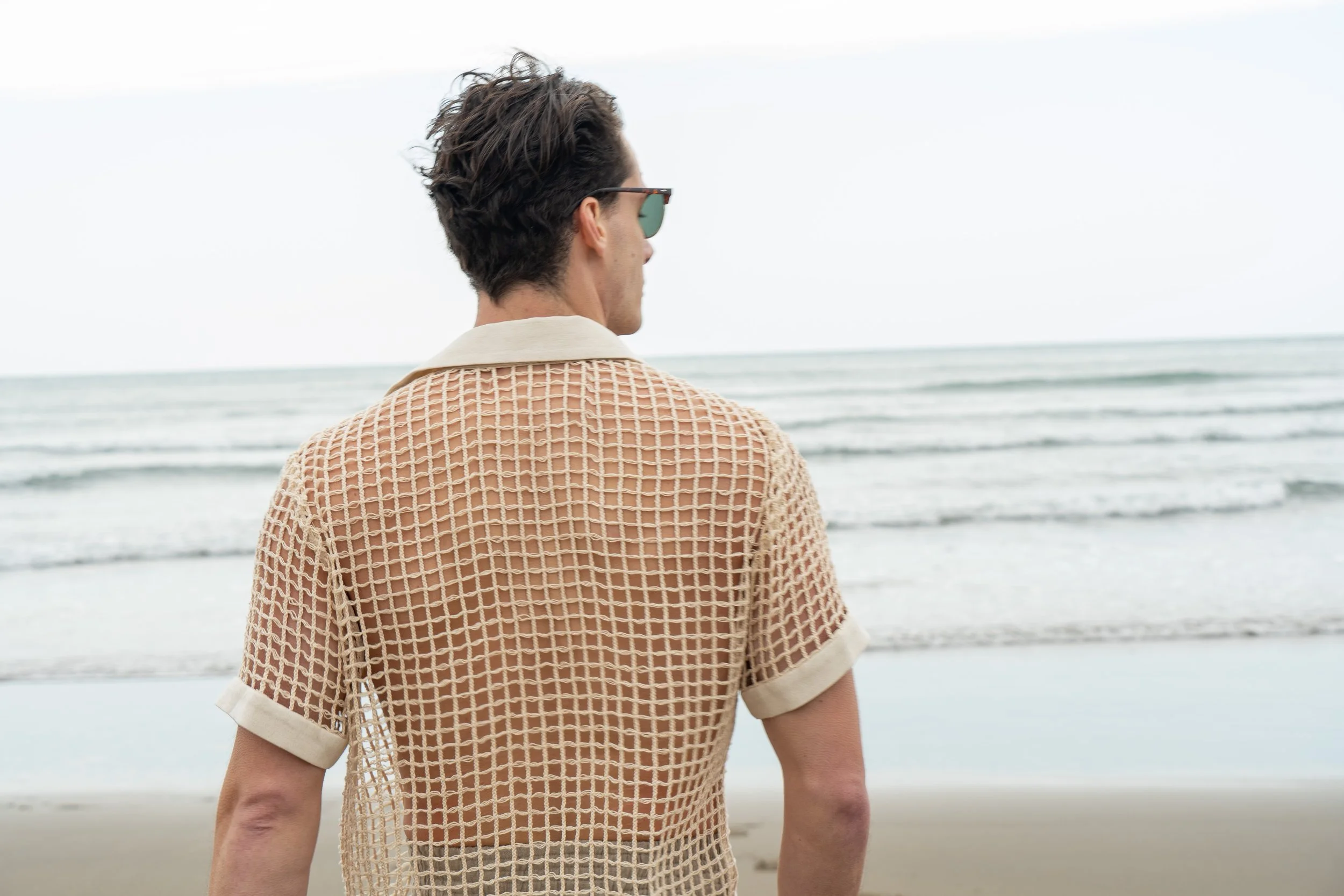 The green shorts carry forward the low-pocket design — but with a twist: two cuff buttons at the hem. We designed the buttons too, down to the last detail.